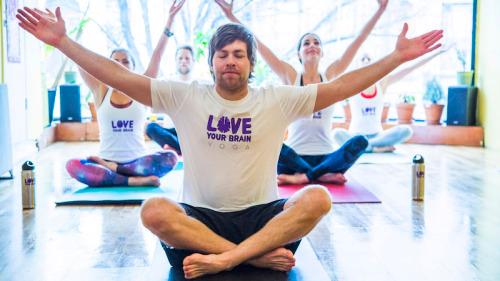 The impact was so real for him that he enlisted his brother Adam and started The LoveYourBrain Foundation in 2014. In honor of March, Brain Injury Awareness Month, the new nonprofit is leading a monthlong yoga and meditation fundraising campaign. Their aim is to partner with at least one studio in every state to offer a donation-based class. All of the money raised will help grow LoveYourBrain’s flagship yoga program, supporting affordable yoga and meditation classes tailored to the needs of traumatic brain injury survivors.